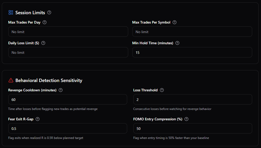 This transforms pre-trade planning into measurable decision discipline, helping traders identify when trades follow their plan — and when emotions begin to influence execution.