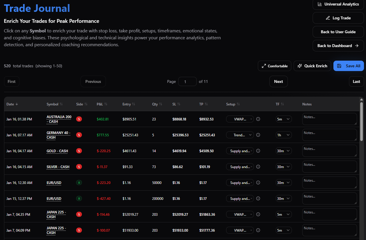 This transforms journaling from documentation into structured performance intelligence.
