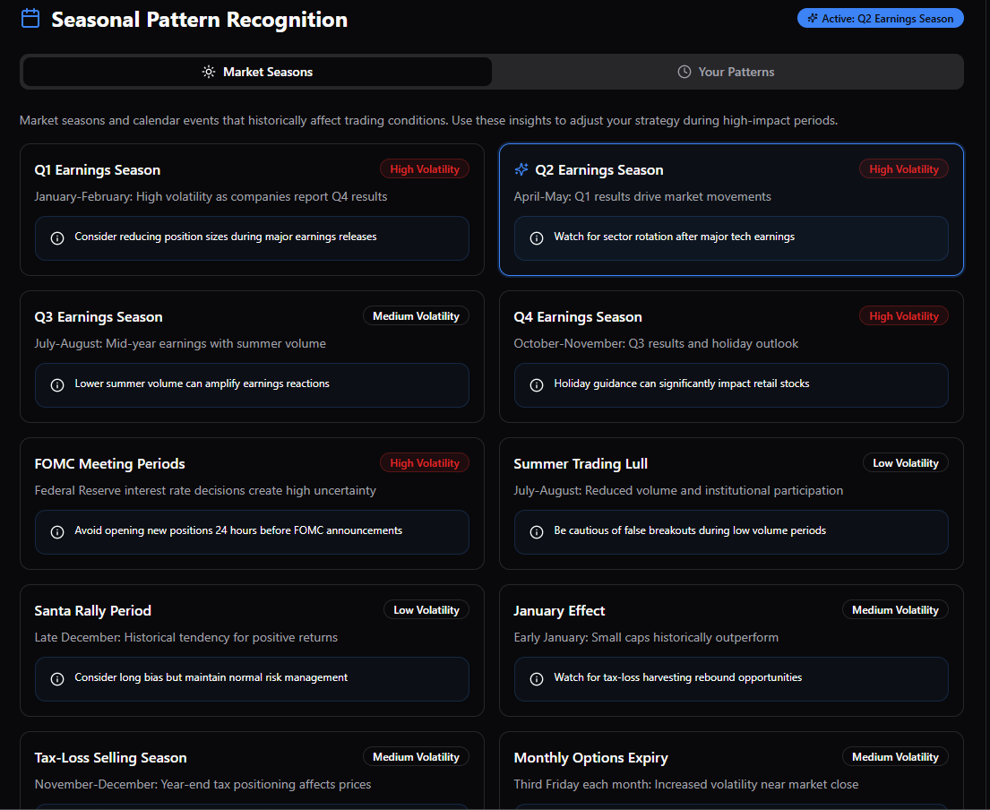 Patterns are identified through behavioural signatures in your trade history — not subjective self-assessment.
