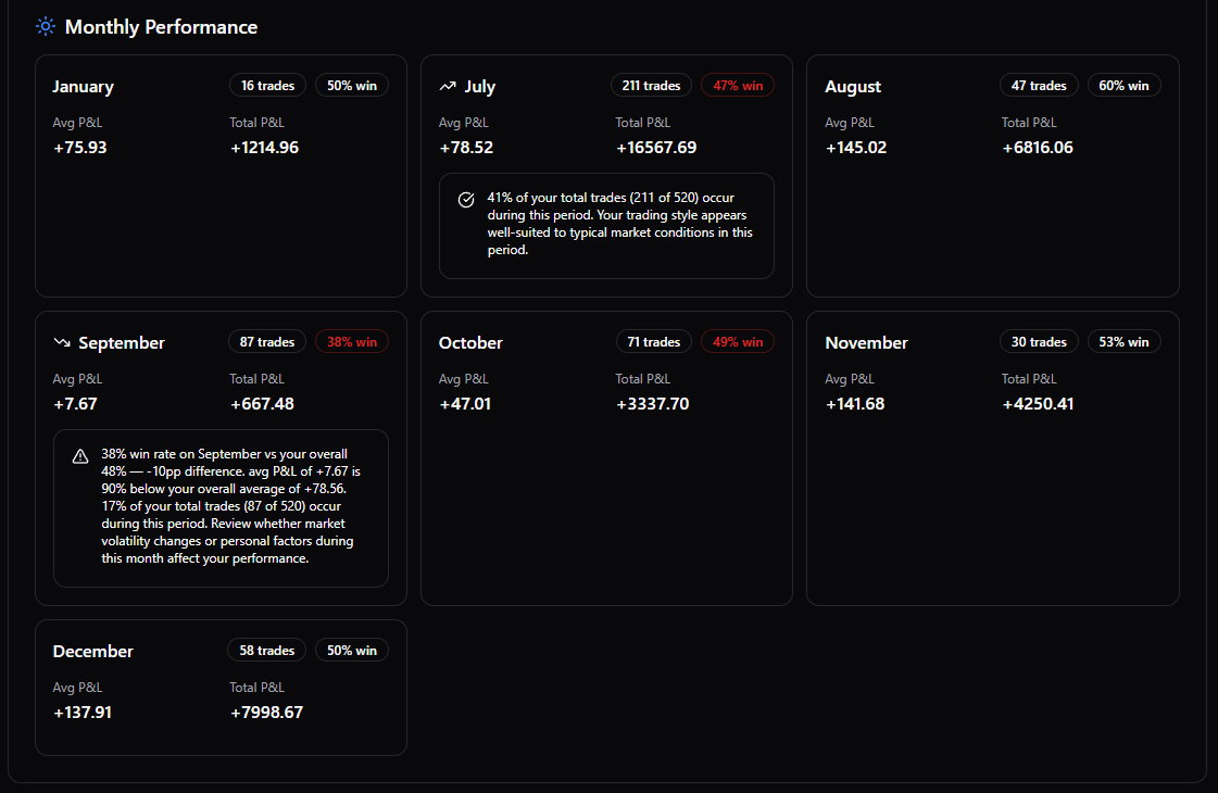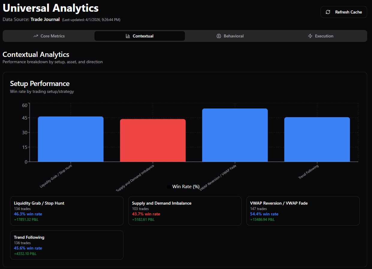 Instead of interpreting numbers in isolation, you see execution decisions in context — making behavioural patterns obvious and measurable.
