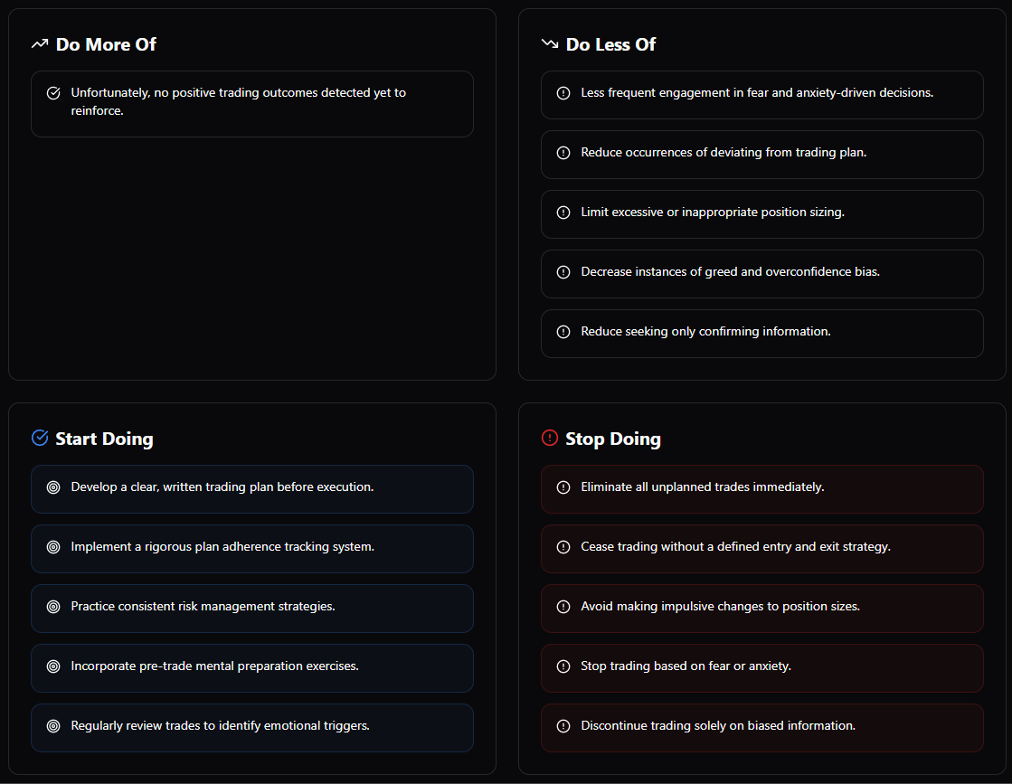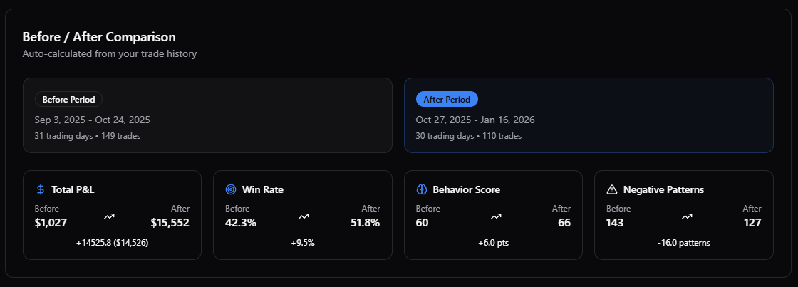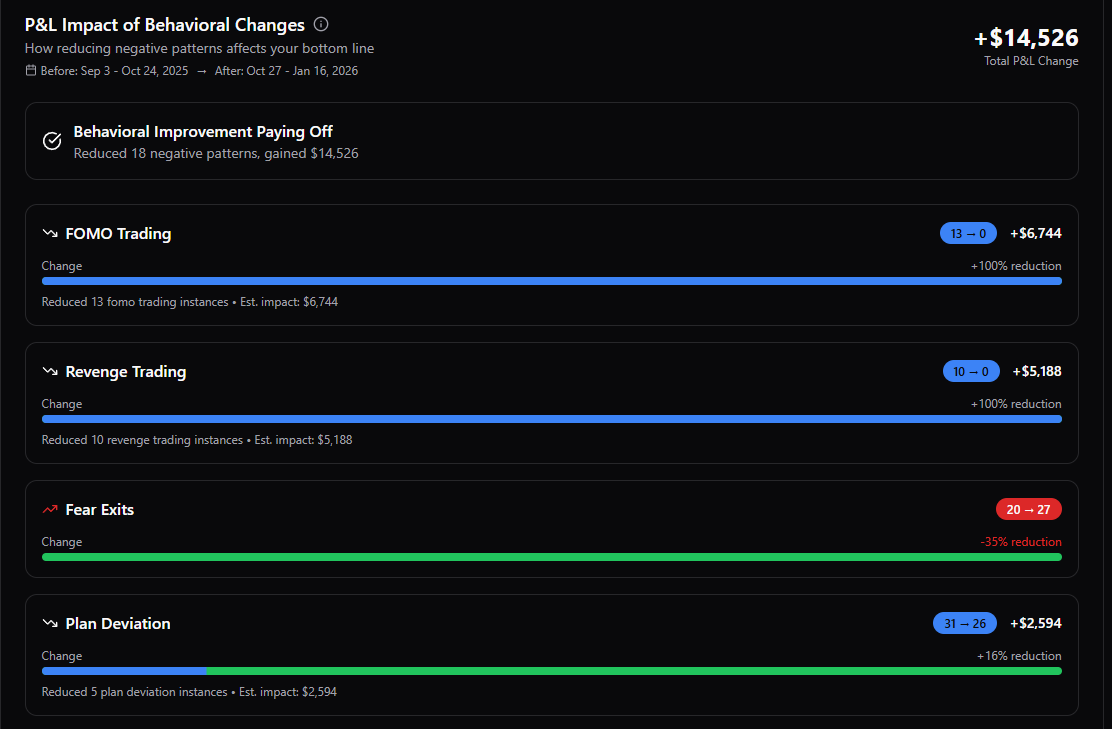 This enables traders to see whether behavioural adjustments are translating into measurable gains.