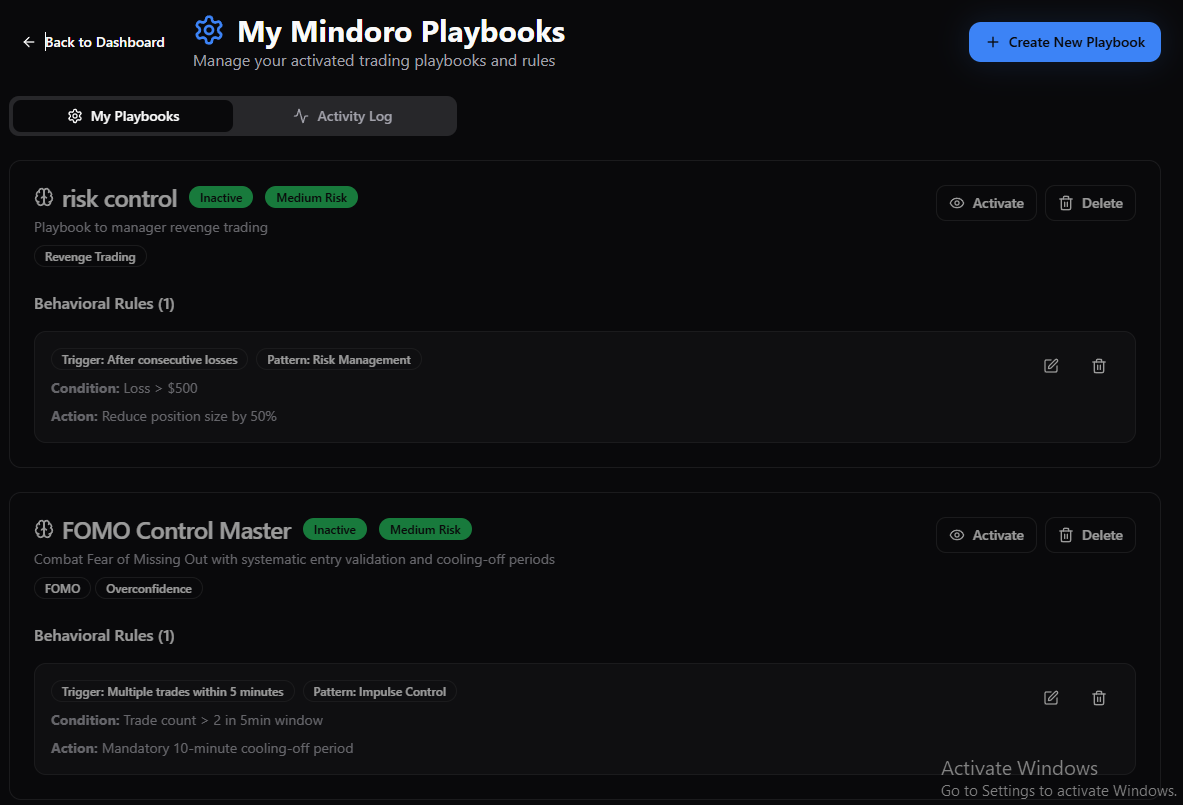 Mindoro helps traders formalise their trading intent into structured, enforceable rules.