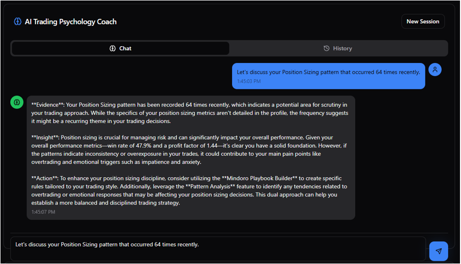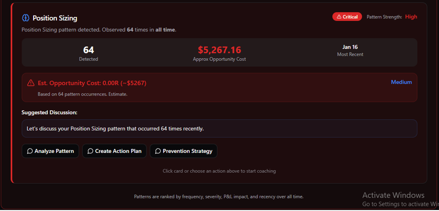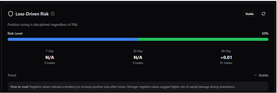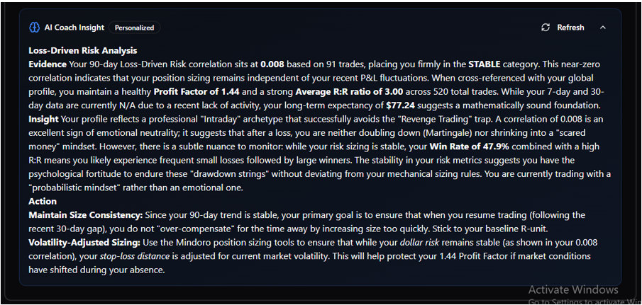 Mindoro identifies patterns of risk escalation—especially after losses—before they compound into major drawdowns.